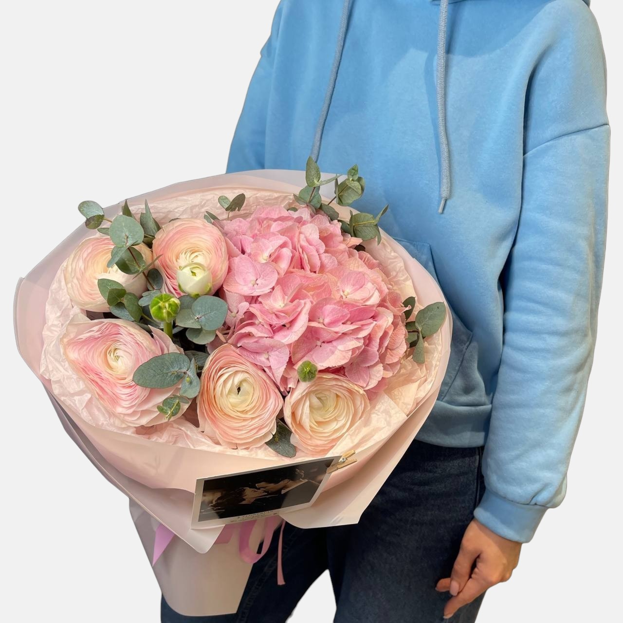Букет с ранункулюсами и гортензией